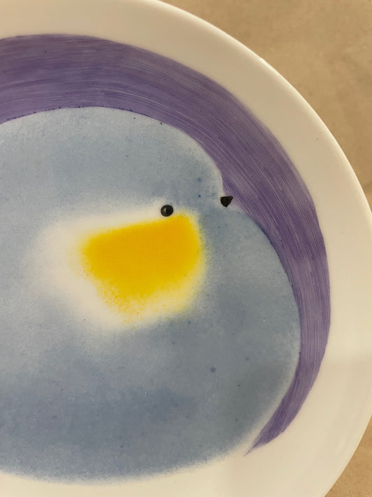 Assiette Oiseau Bleu gris et Jaune
