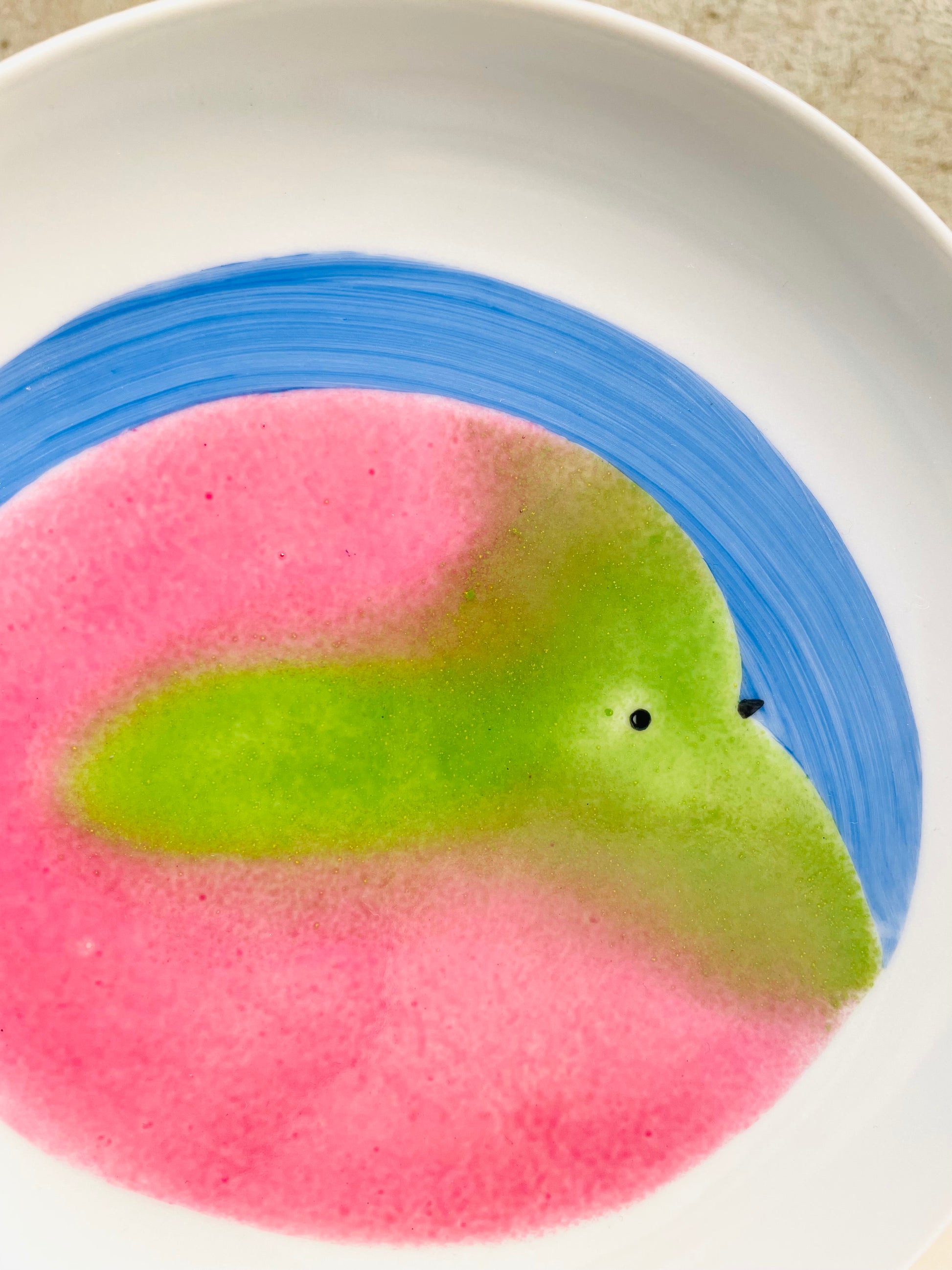 Assiette Oiseau Rose et Vert